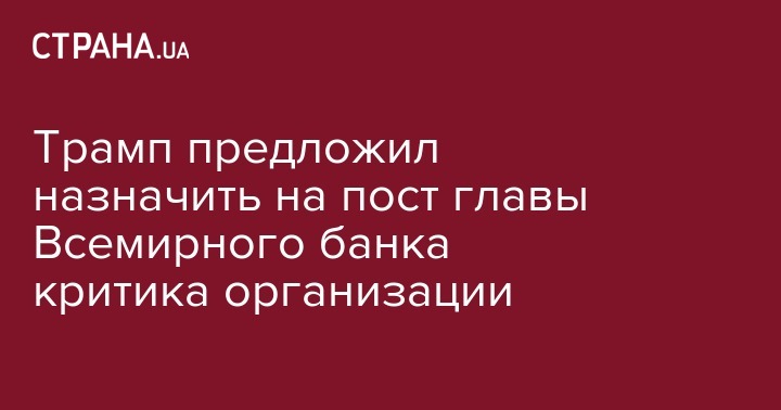 Трамп предложил назначить на пост главы Всемирного банка критика организации