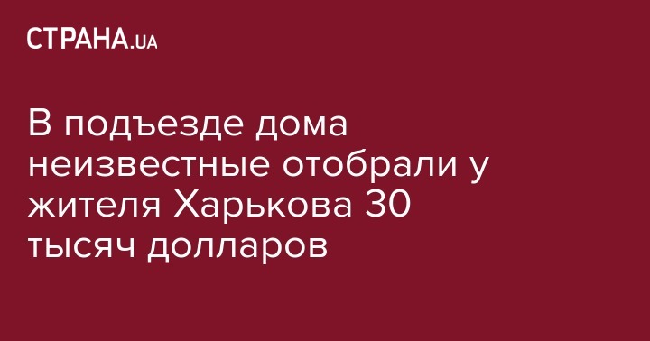 Двое неизвестных, угрожая оружием, ограбили 47-летнего мужчину в подъезде одного из домов в спальном районе Харькова. Злоумышленники украли $30 тыс.долл, сообщает Интерфакс со ссылкой на отдел коммуникаций ГУ Нацполиции в Харьковской области.