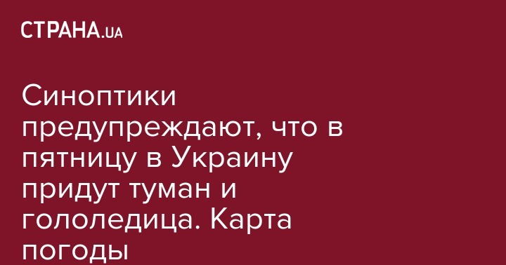Синоптики предупреждают, что в пятницу в Украину придут туман и гололедица. Карта погоды