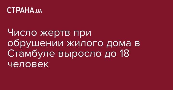 Количество жертв при обрушении здания в турецком Стамбуле увеличилось до 18. Об этом передает РИА "Новости".