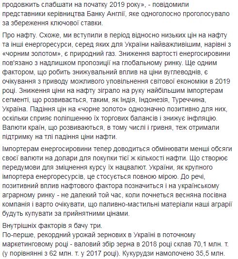 Однако, отметил Данилишин, "есть повод для спокойствия только в краткосрочной перспективе". В частности, ФРС может вернуться к вопросу о повышении ставок. Кроме того, замедление темпов роста мировой экономики может привести к падению спроса на украинский экспорт, а нерезиденты выйти из украинских ОВГЗ. "Я бы подумал о целесообразности максимального выполнения плана интервенций Нацбанка по покупке валюты в международные резервы в первой половине года, пока курс приемлемый", - добавил он.
