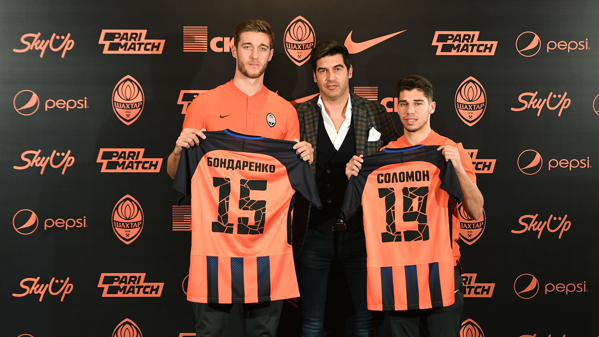 Во вторник, 12 февраля, главный тренер "горняков" Паулу Фонсека на церемонии в отеле "Опера" вручил Манору Соломону и Валерию Бондаренко игровые футболки "Шахтера".