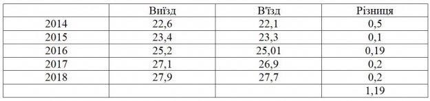 Из приведенных цифр видно, что из Украины во всех направлениях ежегодно выезжают по 22-27 миллионов раз. Причем за последние пять лет количество выездов увеличилось примерно на пять миллионов.