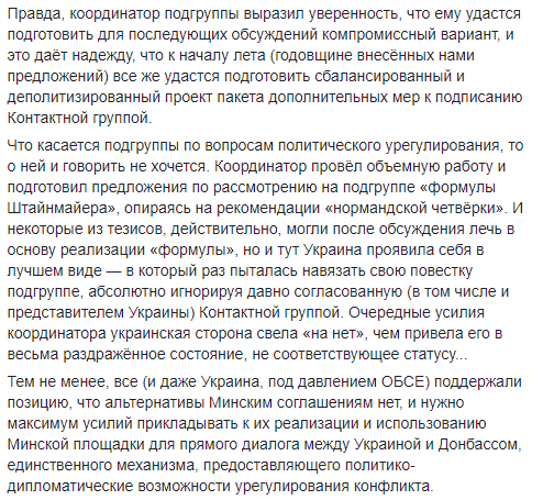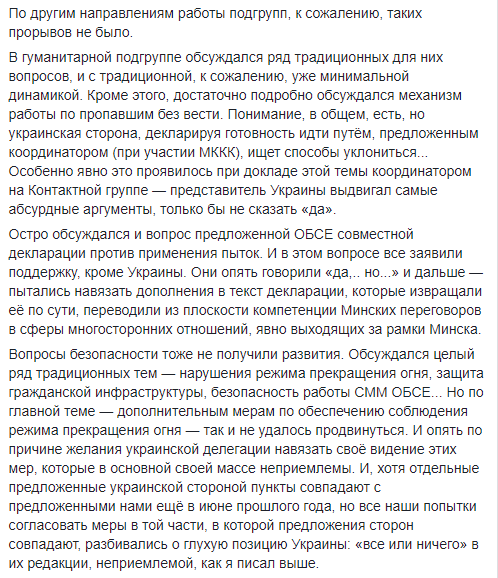 Как отметил Дейнега, на протяжении 2,5 лет деньги за воду, которую с украинской стороны поставляют на территорию непризнанной "республики", передавались наличными на линии разграничения. "И не просто на линии - на минном поле, через которое проводники с украинской стороны только им известными тропами проводили наших представителей с мешками наличных. И вот, сегодня появился шанс обходиться без этого, предельно опасного, мероприятия и перейти к безналичным расчетам", - сообщил он о минимальной позитивной динамике по итогам последних переговоров в Минске.