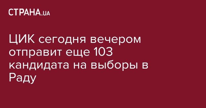 ЦИК сегодня вечером отправит еще 103 кандидата на выборы в Раду