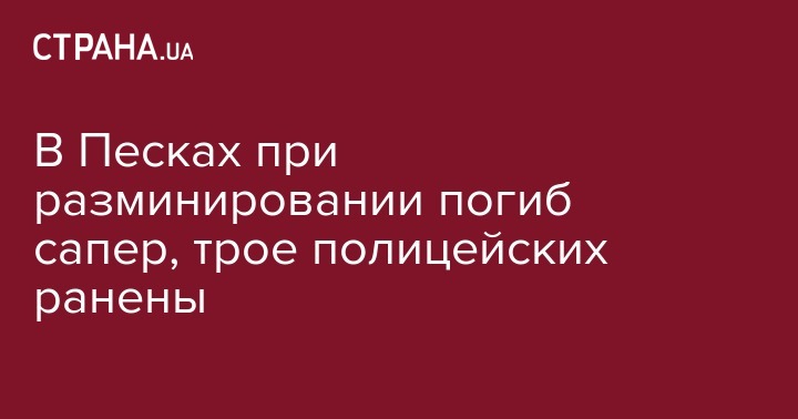 В субботу, 16 февраля, в поселке Пески Ясиноватского района Донецкой области погиб спасатель-сапер, трое полицейских получили ранения. Об этом сообщил глава Нацполиции Сергей Князев в Facebook.