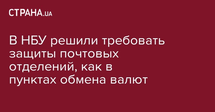 В НБУ решили требовать защиты почтовых отделений, как в пунктах обмена валют