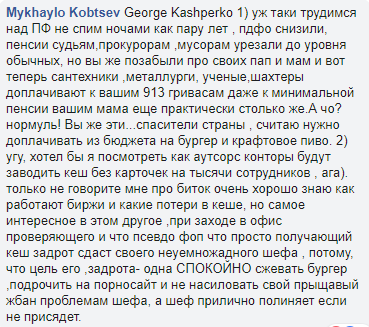 "Самое интересное в этом другое. При заходе в офис проверяющего, что псевдофоп, что просто получающий кэш задрот - сдаст своего неуемно жадного шефа. Потому что цель его одна -  спокойно сжевать бургер, подрочить на порносайт и не насиловать свой прыщавый жбан проблемами начальника", - написал Кобцев.