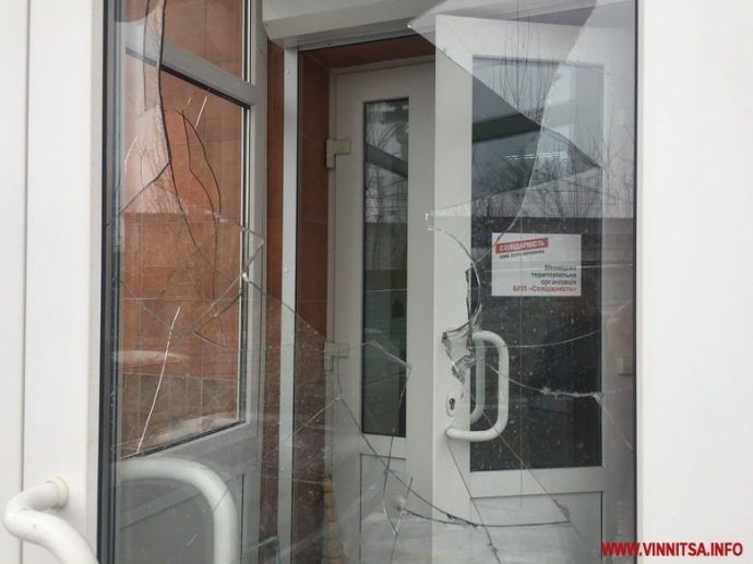 В Виннице неизвестные разбили окна входной двери общественной приемной партии Блок Петра Порошенко "Солидарность". Инцидент произошел 22 февраля около 7:00. Полиция начала расследование. Об этом сообщается на сайте ГУНП Винницкой области.