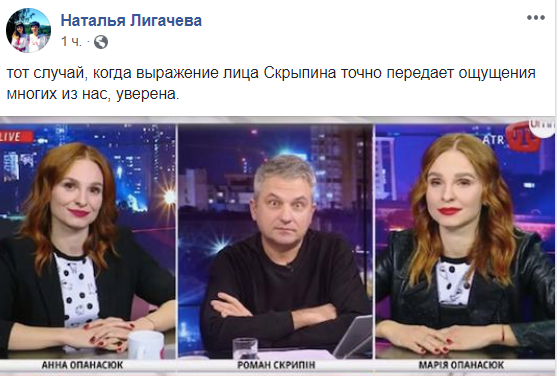 "Тот случай, когда выражение лица Скрыпина точно передает ощущения многих из нас, уверена", - пишет в Facebook медиаэксперт и "адвокат Банковой" Наталья Лигачева.