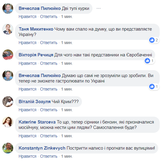 После этого эфира на страницу певиц в Facebook ринулись хейтеры. Они начали упрекать Анну и Марию за сказанные ими слова, оскорблять их и требовать уехать их Украины.