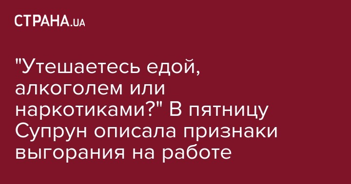 Глава Минздрава Ульяна Супрун вместе с Дарьей Озерной из UA: Радио Культура рассказала о выгорании на работе, его симптомах и как с ним бороться. Соответствующий пост опубликован на странице чиновницы в социальной сети Facebook.