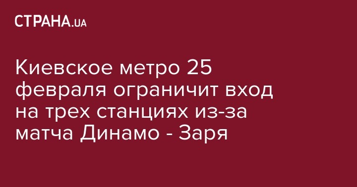 Сегодня вечером, 25 февраля, возможны изменения в работе столичного метро из-за проведения на НСК "Олимпийский" футбольного матча между командами Динамо (Киев) и Заря (Луганск). Об этом сообщает официальный сайт Киевского метрополитена.