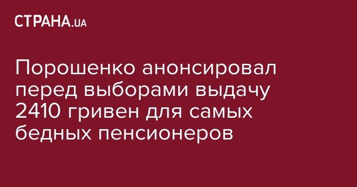 Порошенко анонсировал перед выборами выдачу 2410 гривен для самых бедных пенсионеров