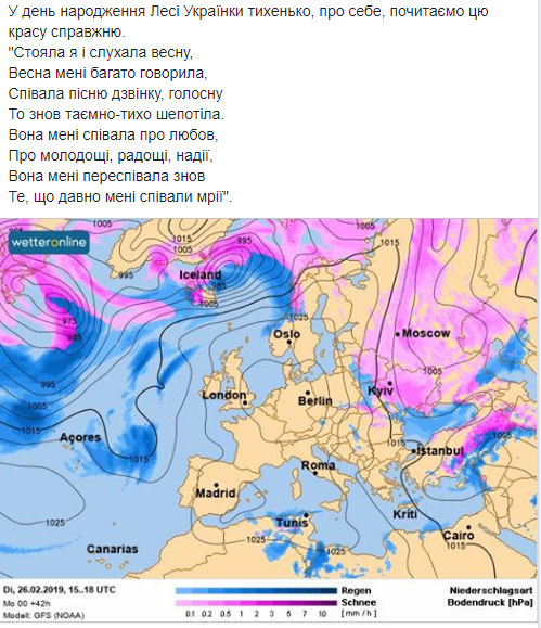 Напомним, 25 февраля в Украину придет незначительное потепление: с юго-запада будет давить антициклон, а с севера – циклон. Украина окажется между этими мощными атмосферными гигантами.