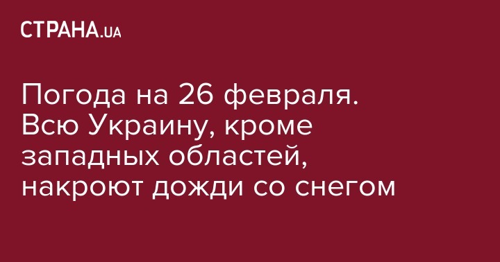 Во вторник,26 февраля, в Украине будет пасмурно, в некоторых областях ожидаются снег с дождем. Об этом свидетельствует прогноз, опубликованный на сайте Укргидрометцентра