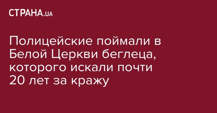 Полиция из Белой Церкви под Киевом задержали мужчину, который за совершение краж разыскивался почти 20 лет. Об этом сообщает полиция Киевской области.