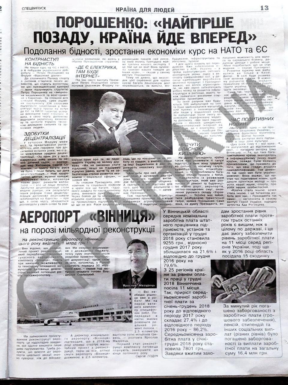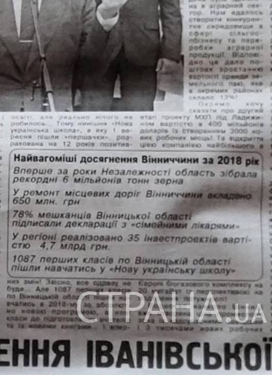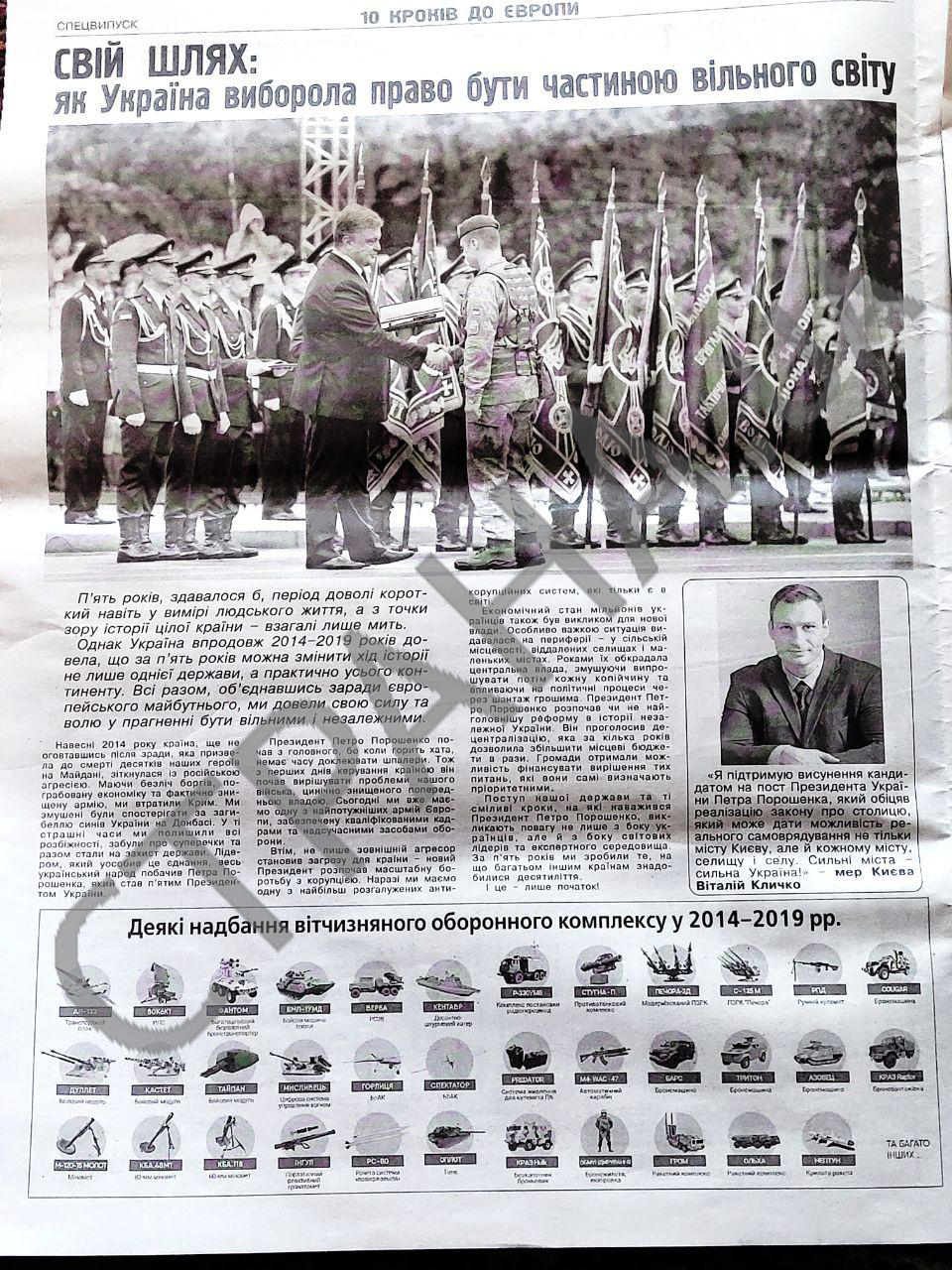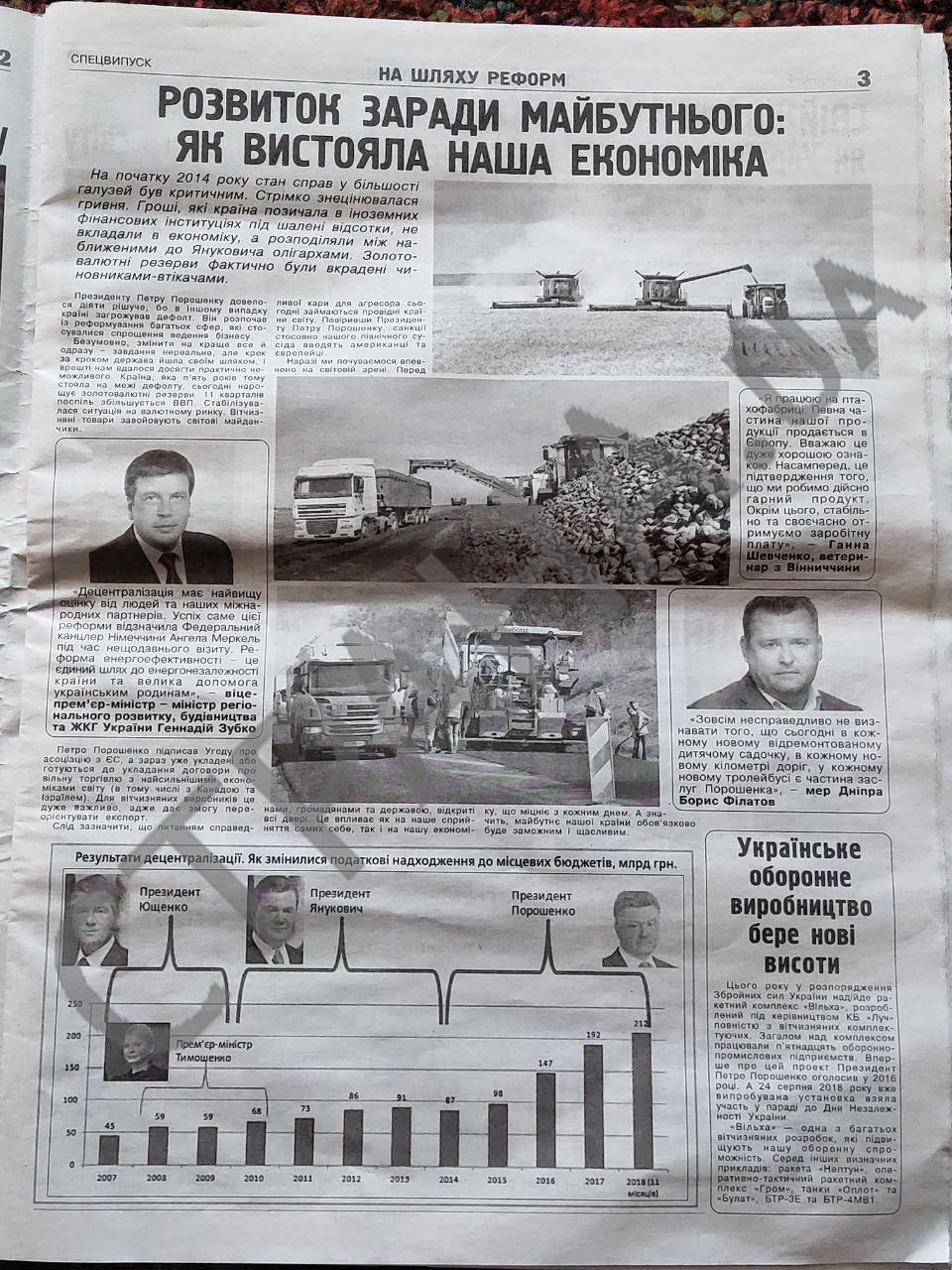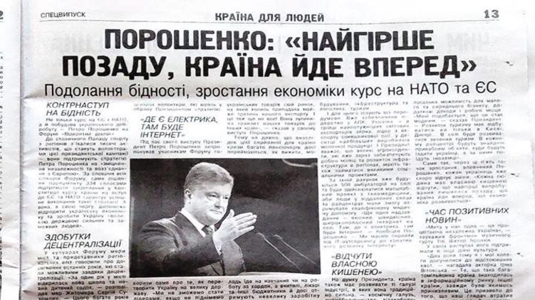 Газета Порошенко составлена в традициях советских партий газет: "Оборонное производство берет новые высоты", "Врачи получают достойные зарплаты", "Чем запомнились визиты Порошенко", "Собраны рекордные 6 миллионов тонн зерна".