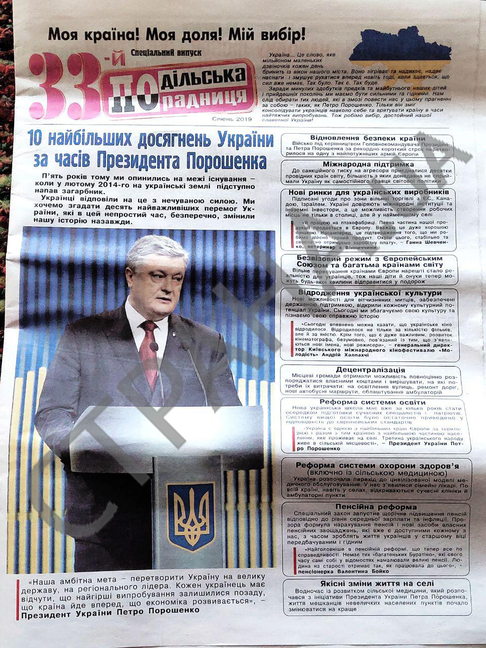 Помимо Томос-тура, встреч с агитаторами из регионов, #Сетки и других активностей, Банковая начала выпуск предвыборной газеты Порошенко. Ее в редакцию "Страны" прислала наша постоянная читательница, которая живет в селе Винницкой области. Агитпродукцию раскладывают в почтовые ящики. Тираж - 22 000 экземпляров.