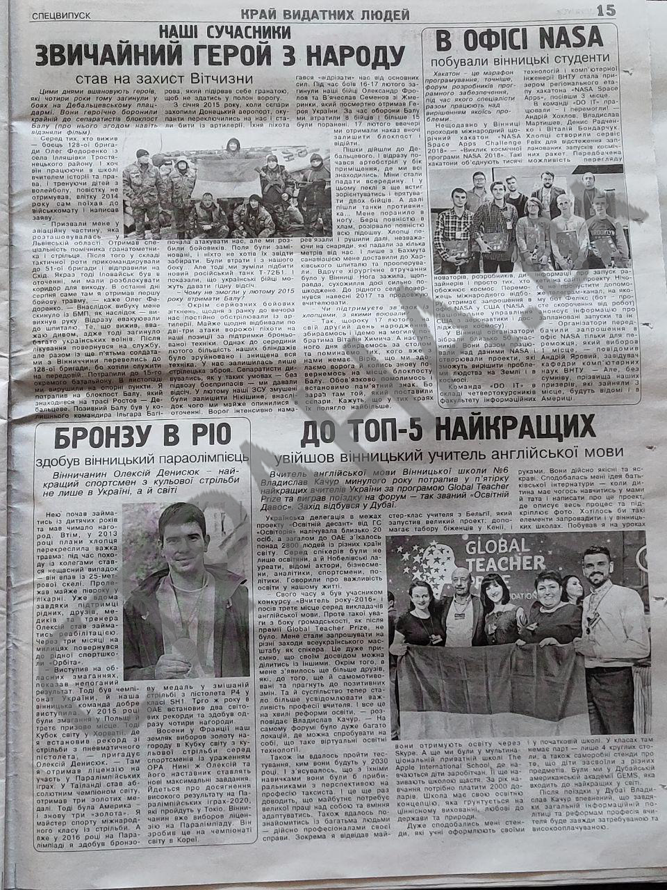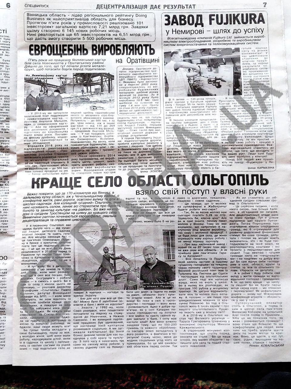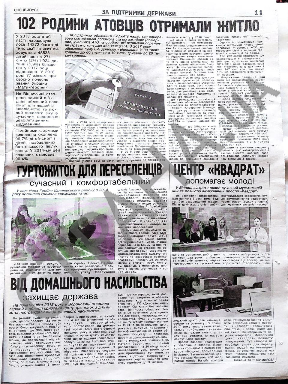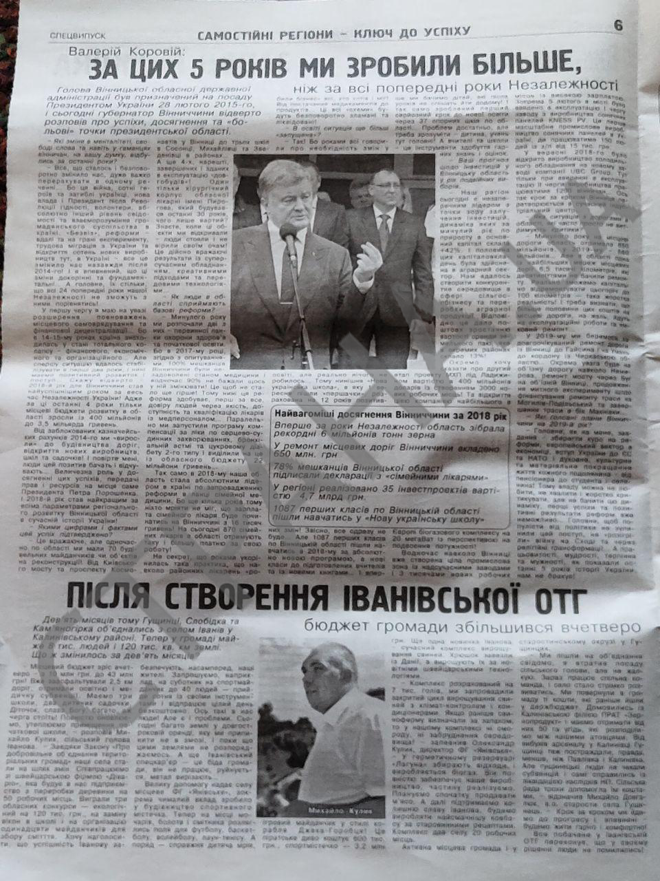 Из газеты Порошенко становится известно об открытии в Винницкой области трех школ и лицея, оставшихся в прошлом очередях в садиках, новом жилье для детей-сирот и семей бойцов АТО.