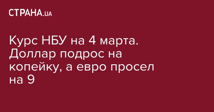 Официальный курс валют НБУ на понедельник, 4 марта, установлен на следующем уровне:
