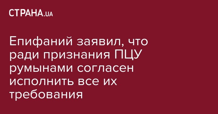 Глава ПЦУ Епифаний (Думенко) заявил о готовности его церкви выполнить условие Румынской Православной церкви для признания. Об этом он заявил в интервью УП в понедельник, 4 марта.