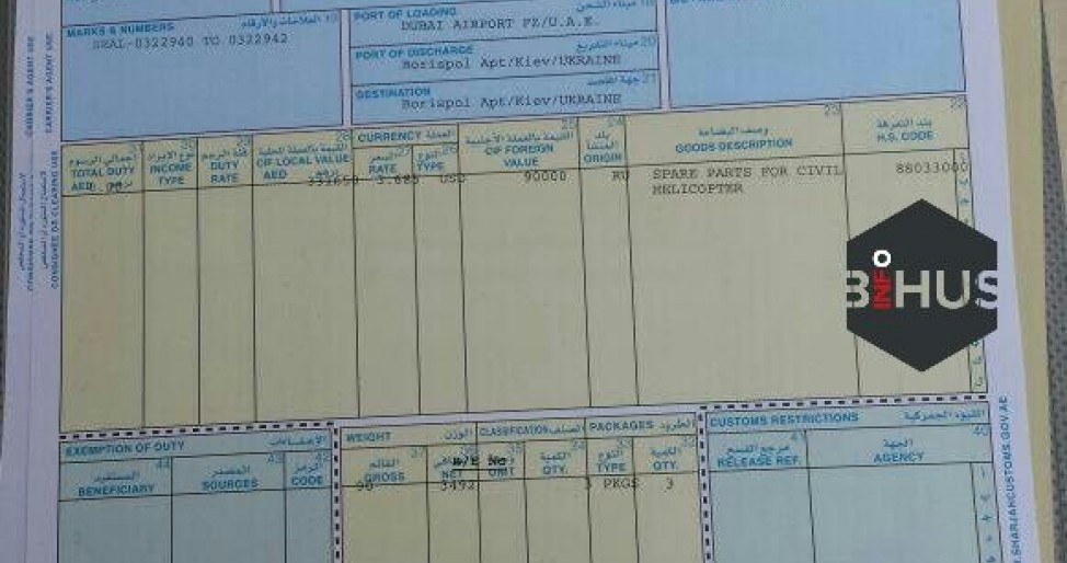 Поставка осуществлялась из Москвы через фирму-прокладку в Арабских Эмиратах, откуда детали уже завозились в Украину под видом запчастей для гражданской авиации.