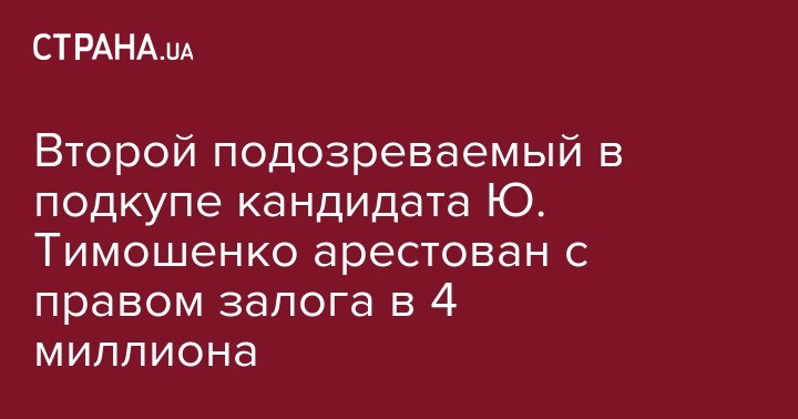 "Второму подозреваемому в попытке подкупа кандидата в президенты Украины - Ищенко А. А. - решением Печерского райсуда Киева избрана мера пресечения в виде содержания под стражей с правом внесения залога в сумме 4 млн грн", - отметила Сарган.