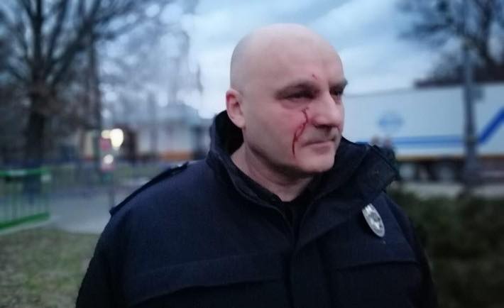 "Начальник черкасской полиции растерянно поднимает руки перед парой десятков избивших его гопников из Нацдружин. Прекрасный финал реформы полиции", – пишет журналист Денис Иванеско.