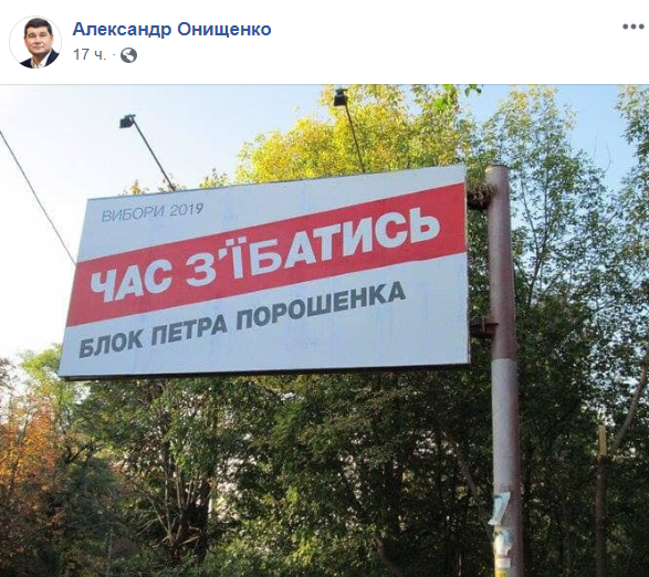 Тему бегства продолжил нардеп Александр Онищенко, опубликовав забавную фотожабу на билборд Порошенко.