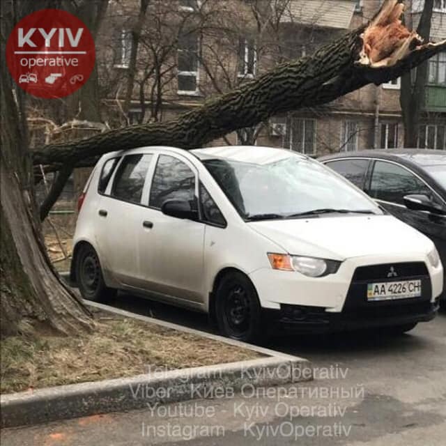 Дерево упало на припаркованную машину в районе метро Нивки.