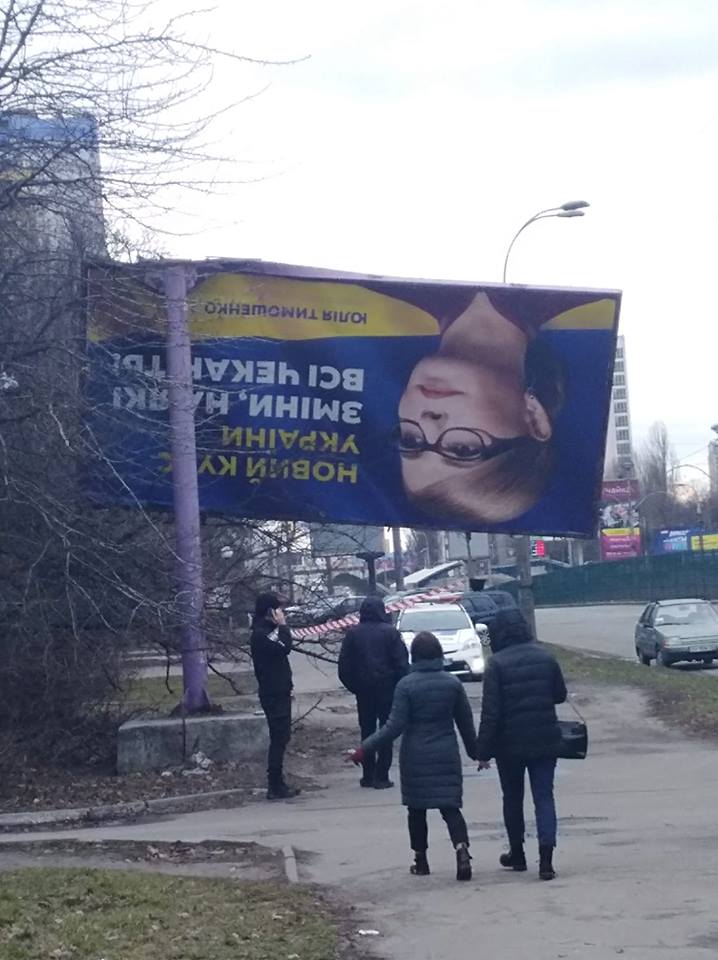 В Киеве на Отрадном ветер перевернул билборд Тимошенко