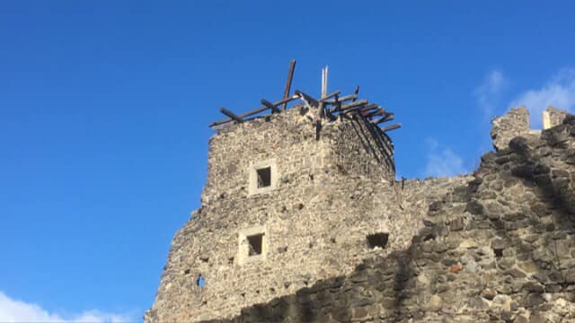 В Ужгороде в одной из башен старинного Невицкого замка сильными порывами ветра сорвало крышу.