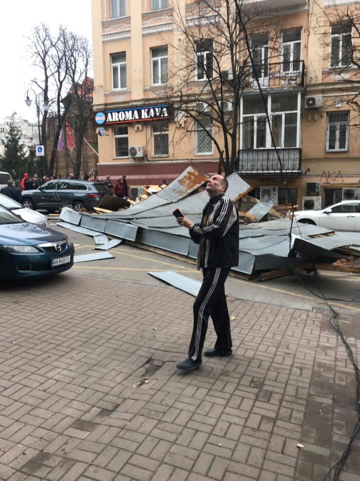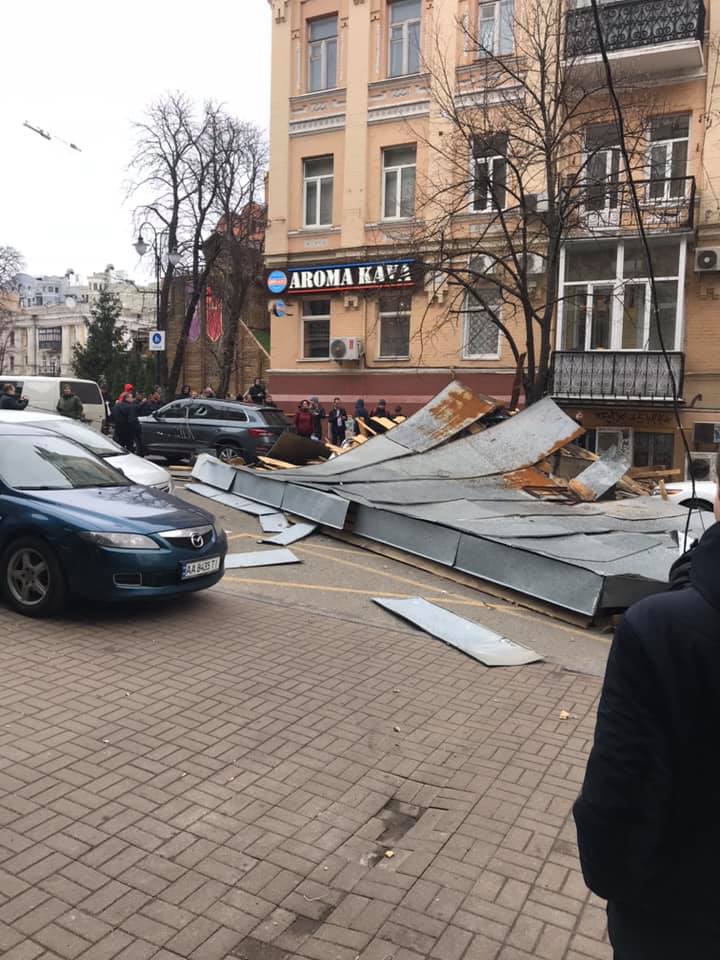А сегодня возле метро "Золотые ворота" на улице Лысенко ветер сорвал часть кровли, которая рухнула на три припаркованных автомобиля и оборвала электрические провода. У двух машин от удара вылетели стекла, у третьей - слетели номера. К счастью, обошлось без жертв. Спасатели и коммунальщики перекрыли улицу.