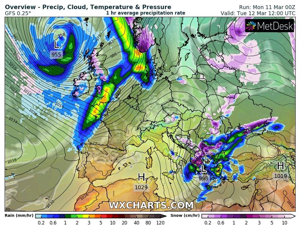 12 марта синоптики прогнозируют ветер северо-западного направления, до 5-12 метров в секунду. На западе Украины пройдет дождь и мокрый снег. На юге также есть вероятность мокрого снега. На остальной территории Украины - без существенных осадков. Температура воздуха будет низкой: ночью 2-4 градуса тепла, днем ​​+2...+8 градусов.