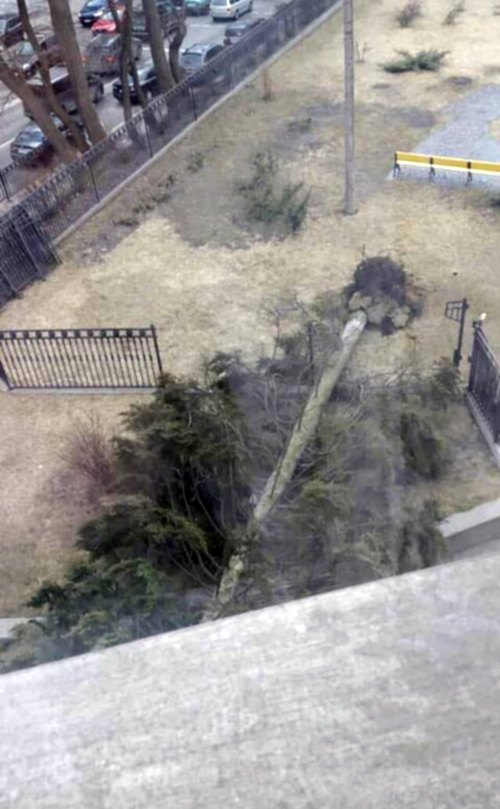Сегодня, 11 марта, из-за сильных порывов ветра в Киеве сломалось огромное хвойное дерево, которое упало прямо возле подъезда номер 1, через который на работу заезжает на авто с охраной спикер Верховной Рады Андрей Парубий. Об этом сообщает Левый берег.