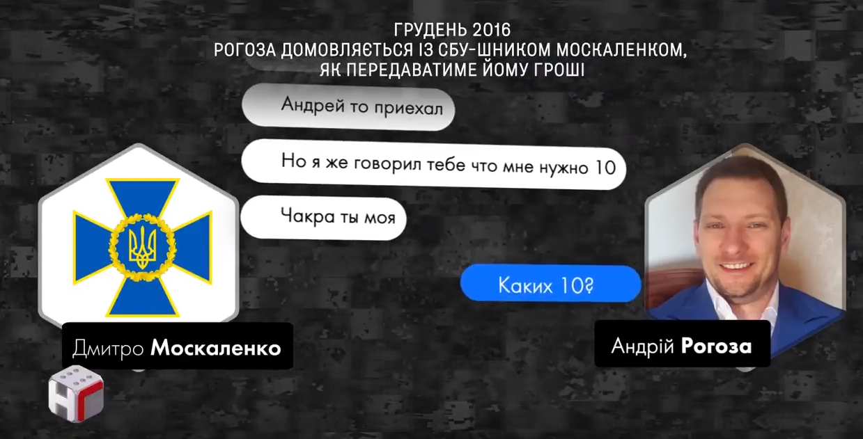 Один из фигурантов переписок - следователь киевского СБУ Дмитрий Москаленко. С ним контактирует Рогоза. Он жалуется, что в прокуратуре закрывать дела стало дорого.