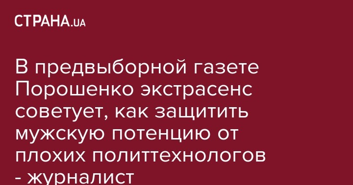В предвыборной газете президента Петра Порошенко экстрасенс рассказывает, как защитить мужское достоинство и потенцию от негативного влияния политических технологов. Об этом на своей странице в соцсети Facebook сообщил журналист Евгений Куксин и выложил соответствующий скришот.