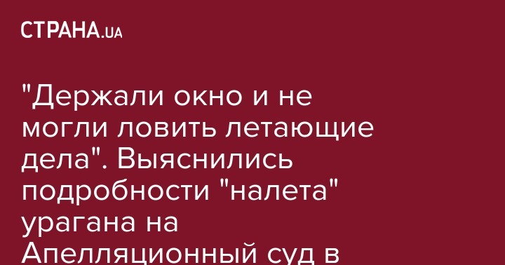 В Киевском апелляционном суде подсчитывают число страниц уголовных дел, которые ураган вынес из здания через окно. Как пояснили в суде, пострадали лишь архивные дела. Подробностями инцидента на своей странице в соцсети поделился блогер Денис Гороховский.