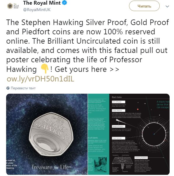 Монеты с черной дырой выпущены в исполнении из разных сплавов и стоят от 10 до 795 фунтов (в золоте). Весь тираж монет уже зарезервирован.