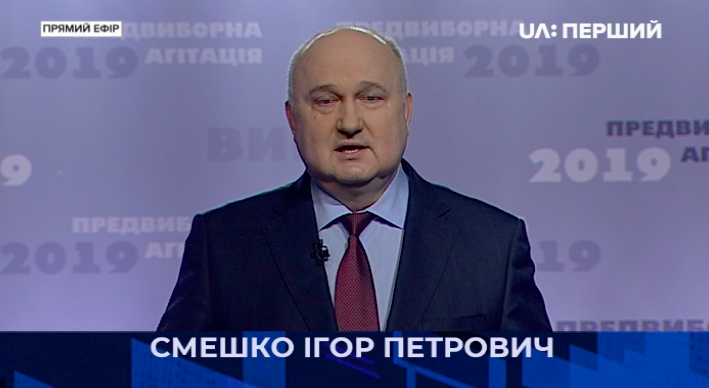 На телеканале UA: Перший состоялось выступление кандидата в президенты Игоря Смешко.