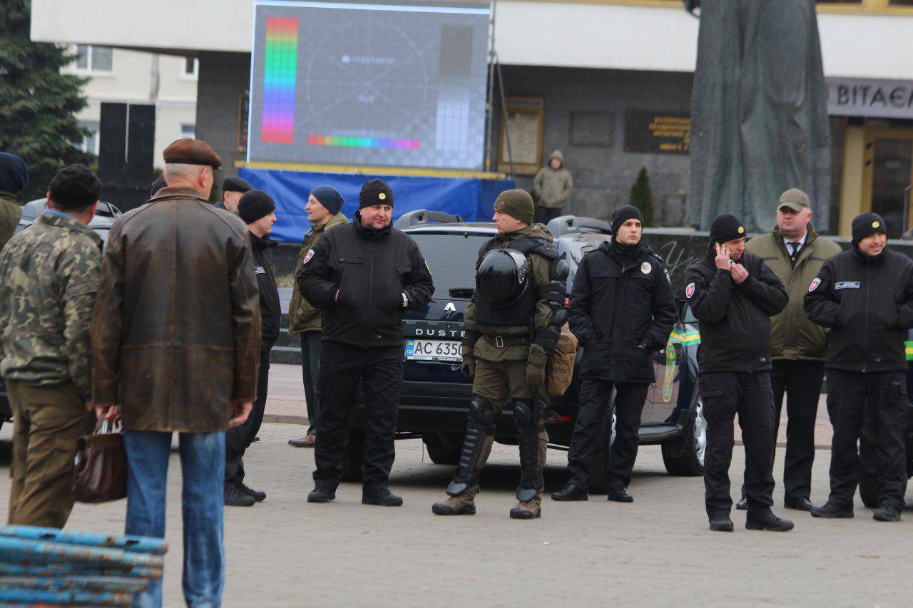 На фото видно, что в Луцке полным ходом идут приготовления к приезду президента.