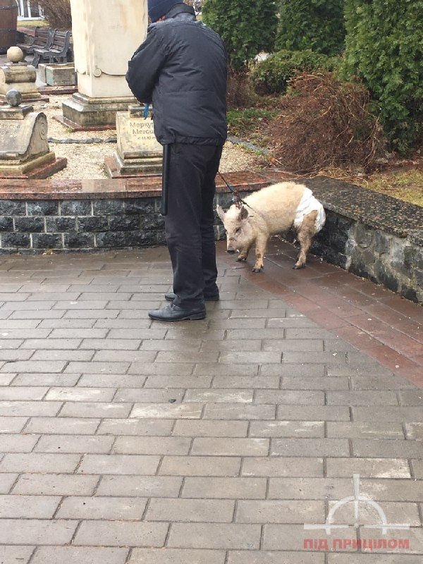 И если раньше житель Луцкого района приводил на площадь "маленького Свинарчука" Петю, то на этот раз на площади оказался довольно большой кабан. Он был на поводке и в подгузнике, громко кричал и упирался. Хозяина свиньи задержали полицейские, которые провели с ним разъяснительную беседу.