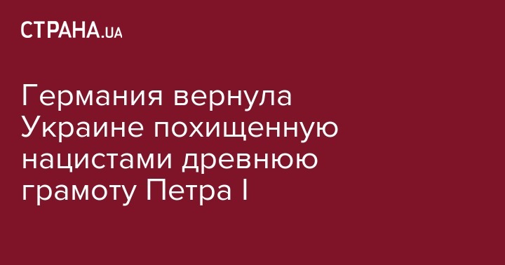Германия вернула Украине похищенную нацистами древнюю грамоту Петра I