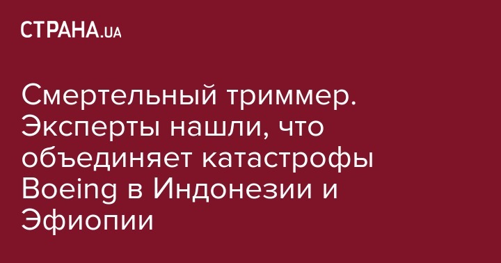 Авиационные эксперты, которые сейчас выясняют причины трагедии в Эфиопии, где разбился Boeing-737 MAX 8 со 157 пассажирами на борту, нашли связь с катастрофой такого же лайнера в Индонезии (произошла в октябре минувшего года, погибло 189 человек - Прим.Ред.).