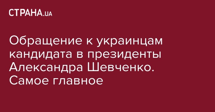 Обращение к украинцам кандидата в президенты Александра Шевченко. Самое главное