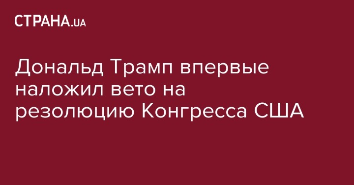 Отмечается, что это первый случай за время президентства Трампа, когда он воспользовался правом вето.