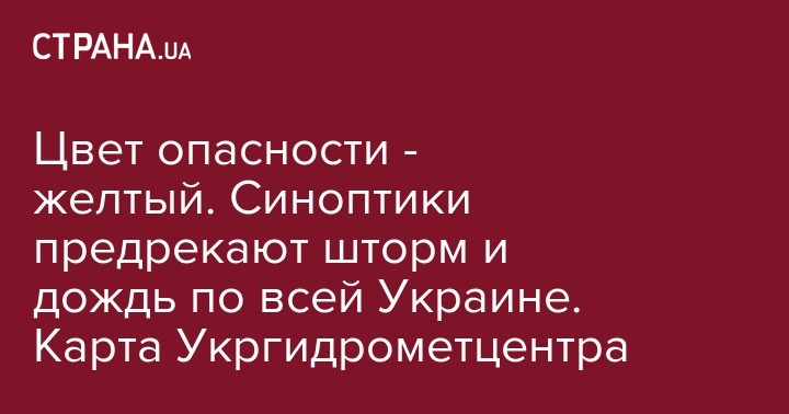 Цвет опасности - желтый. Синоптики предрекают шторм и дождь по всей Украине. Карта Укргидрометцентра
