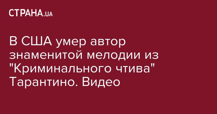 Печальная новость пришла из США. Здесь умер музыкант Дик Дейл, автор музыки культового фильма Квентина Тарантино "Криминальное чтиво". Дик Дейл написал в свое время знаменитый хит Misirlou, который звучит в фильме.