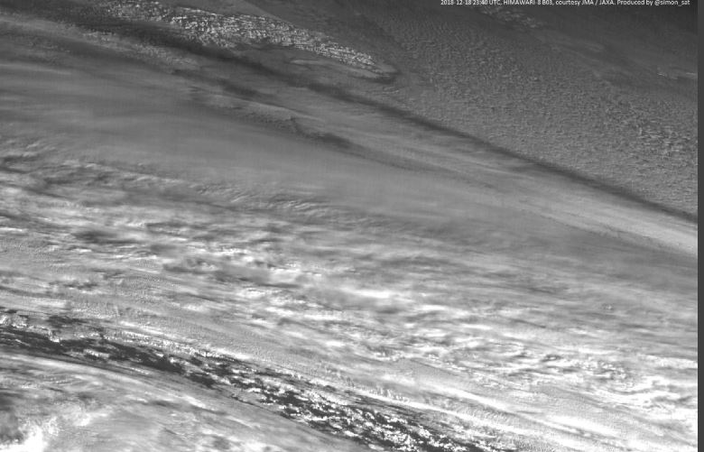 При этом японский спутник "Химавари" зафиксировал почти вертикальный столб дыма от болида - он вошел в атмосферу очень резко. Также можно увидеть длинную тень этого столба.